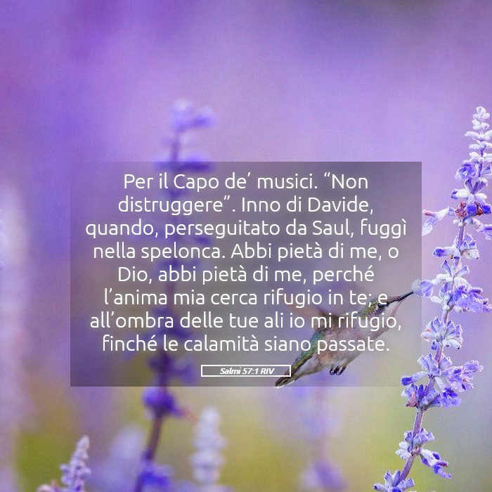 «Abbi pietà di me, o Dio, abbi pietà di me, perché l’anima mia si rifugia in te; e all’ombra delle tue ali io mi rifugio finché siano passate le calamità.»