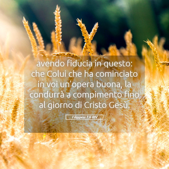 "Essendo persuaso di questo, che Colui che ha cominciato in voi un’opera buona, la condurrà a compimento fino al giorno di Cristo Gesù;"