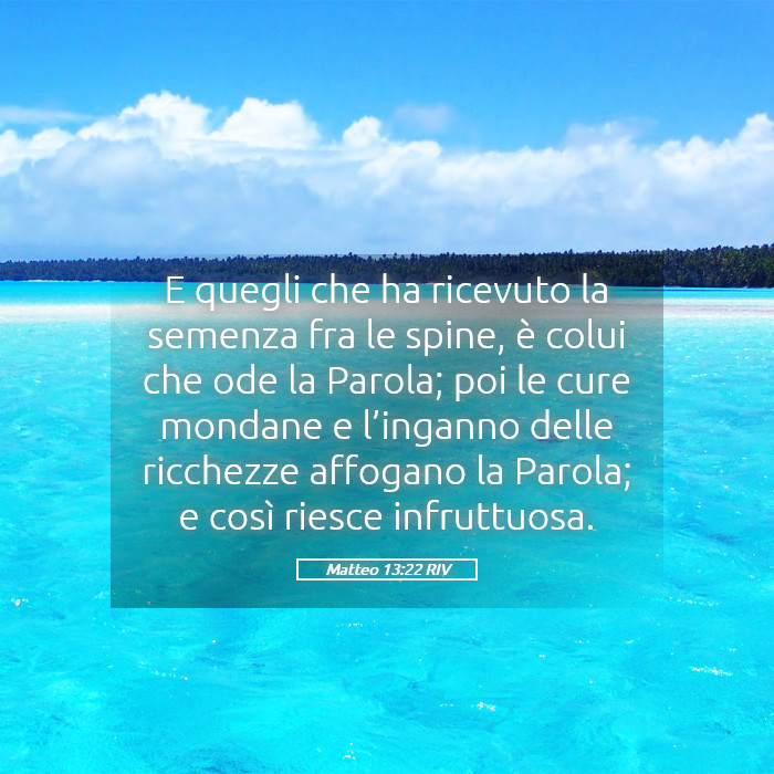 “E quello che ha ricevuto il seme fra le spine è colui che ode la parola; ma le cure mondane e l’inganno delle ricchezze soffocano la parola, che rimane infruttuosa.”