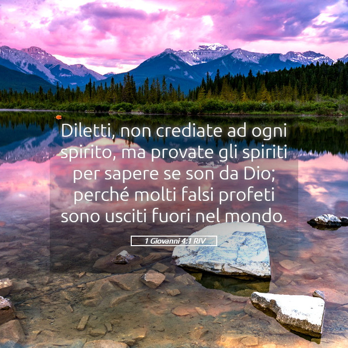 1 Diletti, non crediate ad ogni spirito, ma provate gli spiriti per sapere se sono da Dio; perché molti falsi profeti sono usciti fuori nel mondo.