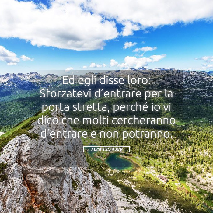 24 Sforzatevi d’entrare per la porta stretta; poiché io vi dico che molti cercheranno d’entrare e non potranno.