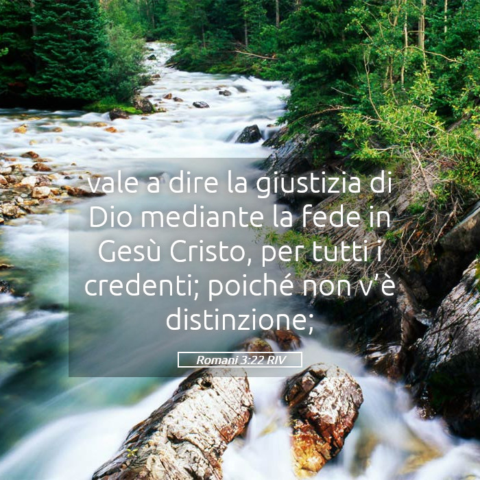 Romani 3:22 – “vale a dire la giustizia di Dio mediante la fede in Gesù Cristo, per tutti i credenti; poiché non v’è distinzione.”