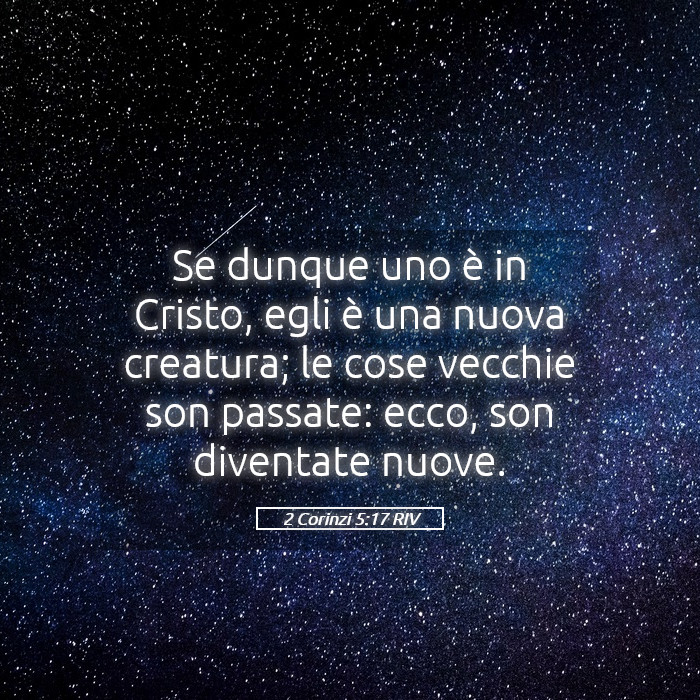 2 Corinzi 5:17 – “Se dunque uno è in Cristo, egli è una nuova creatura; le cose vecchie sono passate: ecco, son diventate nuove.”